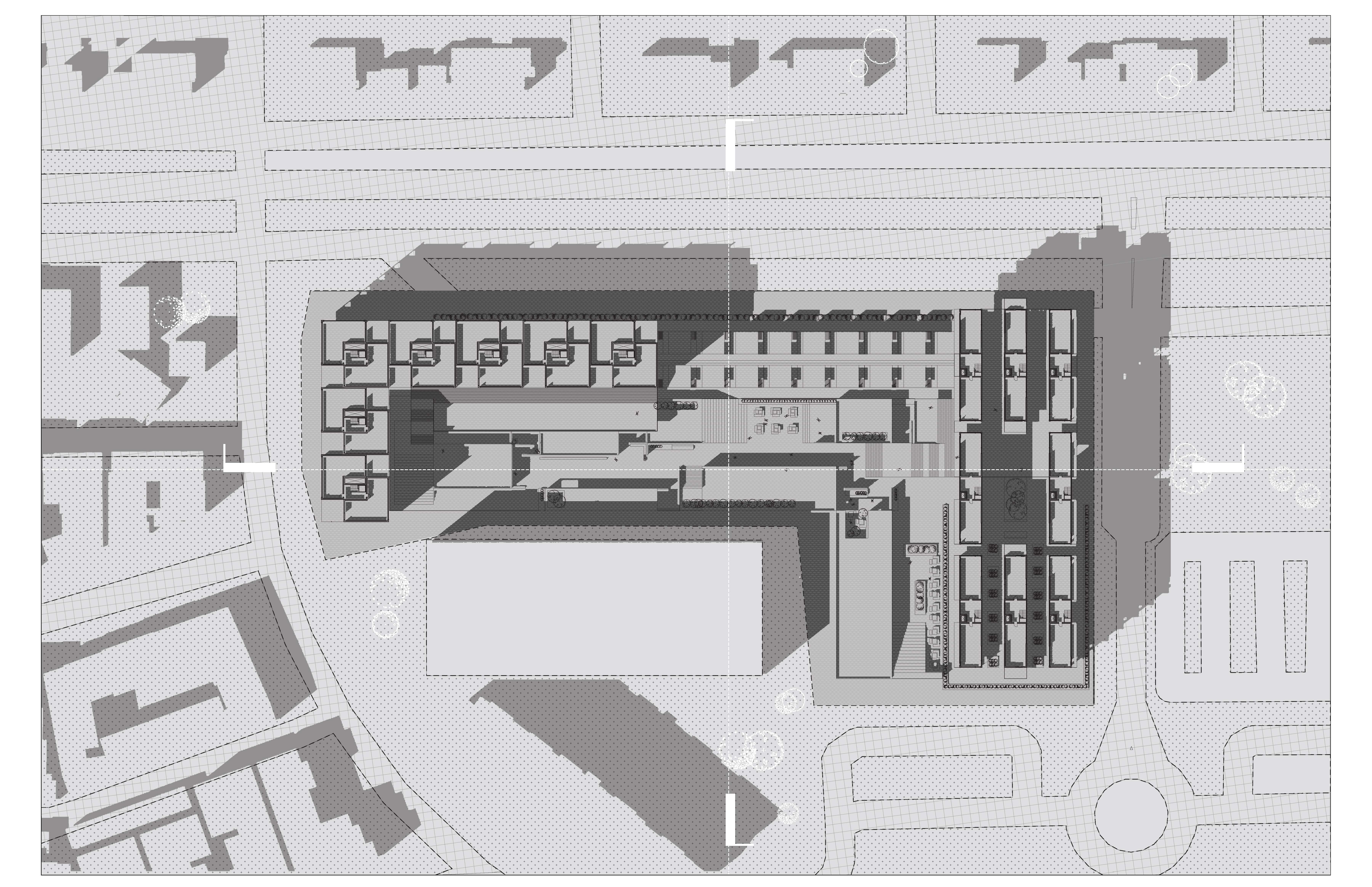 A multi-family Los Angeles residence supplemented by a plaza with a variety of commercial programs.